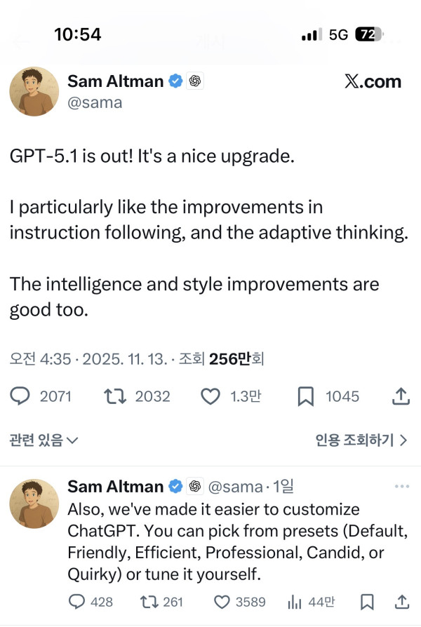 Sam altman 5.1 좋아졌다고 자렁 페이지 정보 작성자 제로미파크 작성일 11.14 10:55 174 조회 0 추천 0 비추천 목록 본문 https://x.com/sama/status/1988692165686620237?s=46 0 추천 0 비추천 SNS 공유 신고 차단 댓글 0 이전글 다음글 목록