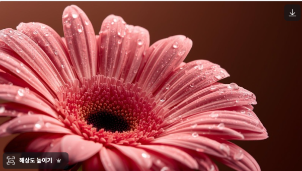 | 프롬프트 | 물방울로 뒤덮인 분홍색 거베라 데이지 한 마리의 클로즈업 매크로 사진입니다. 꽃잎은 미묘한 그라데이션이 있는 부드러운 분홍색이며 섬세한 노란색과 자홍색 중심을 중심으로 바깥쪽으로 구부러져 있습니다. 조명은 드라마틱하고 방향성이 있으며 질감과 깊이를 강조하며 물방울에 부드럽게 반사됩니다. 배경은 따뜻한 갈색 톤으로 평범하고 부드럽게 흐려져 꽃을 선명하게 돋보이게 하는 대비를 만듭니다. 고해상도, 매우 상세한 식물 사진 스타일. |