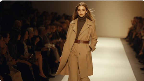 | 프롬프트 | 1990년대 영화 같은 런웨이 패션 씬. 우아하고 자신감 넘치는 여성이 강렬한 워킹으로 캣워크를 걷고 있다. 그녀는 베이지색 울 트렌치코트와 와이드 하이웨이스트 팬츠, 터틀넥 스웨터, 갈색 가죽 벨트를 착용하고 있으며, 랄프 로렌의 90년대 컬렉션에서 영감을 받은 미니멀한 럭셔리 스타일을 보여준다. 따뜻하고 부드러운 스튜디오 조명 아래, 의상의 미묘한 움직임이 돋보이며, 관객들이 런웨이 양옆을 둘러싸고 있다. 빈티지 필름 스타일의 색감 보정, 소프트 포커스 렌즈, 은은한 필름 그레인 효과와 함께 크림, 샌드, 카멜, 커피 컬러의 뉴트럴 톤이 조화를 이룬다. 마치 보그 에디토리얼 사진 같은 분위기로, 심도가 살아 있는 구도 속에 시대를 초월한 우아함이 담겨 있다 |
