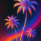 미래적인 분위기의 영상으로, 키가 크고 가느다란 야자수…
