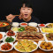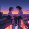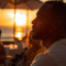 황금빛 노을이 내려앉은 해변가 레스토랑 테라스. 30대…