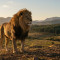 언덕 위에 서서 자연을 바라보는 사자의 영상 장면. 사…