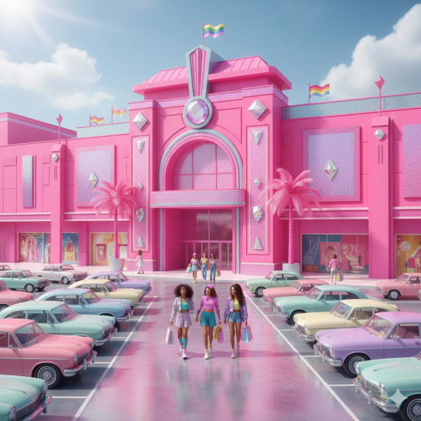 | 프롬프트 | \"90년대에서 영감을 받은 바비 드림하우스 스타일의 사실적인 이미지. 외부는 핫핑크 색상과 반짝이는 요소들로 꾸며진 장난감 같은 소녀 감성의 쇼핑몰. 전체적으로 장난감 느낌을 주며, 드림하우스에서 영감을 받은 디자인. 주차장에는 파스텔 색상의 자동차들이 있으며, 쇼핑몰 입구를 향해 천천히 걸어가는 장면. --ar 51:91 --motion low —video 1“ |