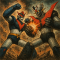 Grok으로 마징가Z와 태권브이가 싸우는 모습을 그려달라고 해 보았다