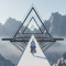 바위산 능선 아래에 떠 있는 삼각형 플랫폼(원근법 착시…
