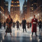 얼음 위에서 남녀 댄서들이 춤을 추려고 하는 모습. …