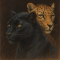 파스텔 스타일로 묘사된 두 마리의 표범—한 마리는 블랙…