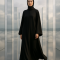 흐르는 듯한 블랙 아바야를 착용한 모델을 담은 에디토리…