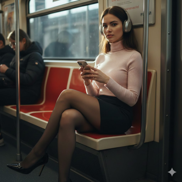 | 프롬프트 | 아침 지하철에서 통근 중인 아름다운 유럽 여성의 하이퍼리얼리스틱 DSLR 사진. 그녀는 빨간 플라스틱 좌석에 앉아 한쪽 다리를 꼰 채, 카메라를 향해 있으며 양손으로 스마트폰을 사용하고 있고, 헤드폰(이어폰)을 착용하고 있다. 그녀는 몸에 딱 맞는 파스텔 핑크색 골지 터틀넥 상의와 검은색 스커트, 시어 블랙 타이츠, 광택 있는 블랙 하이힐을 착용하고 있다. 매끈한 짙은 머리는 자연스럽게 내려와 있고, 지하철 창문으로 들어오는 햇살이 피부, 타이츠, 옷의 현실적인 질감을 강조한다. 주변의 다른 승객들은 약간 흐릿하게 아웃포커싱되어 있으며, 그녀는 선명한 초점으로 돋보이게 잡혀 있다. 피부 질감은 사진처럼 사실적이며, 조명은 영화적이고 자연스럽고, 얼굴 표정과 특징은 선명하고 생생하다. 이미지에는 깊은 심도와 전문가급 DSLR로 촬영한 듯한 높은 해상도가 느껴진다. |
