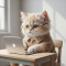 노트북 하고 있는 아기 고양이 제미나이 안경과 고급 니트 의상을 착용한 세련된 아기 고양이가 …