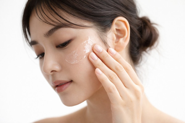 프롬프트 자연스럽고 뉴트럴 톤의 초상 사진. 20대의 젊은 일본인 여성이 집게손가락과 중지를 사용해 투명하고 약간 흐르는 질감의 젤을 광대 부위에 부드럽게 바르고 있다. 젤은 점성이 있고 윤기가 돌아 피부 위에 매끄럽고 균일한 층을 형성한다. 젤을 바른 부위를 강조하기 위해 얼굴의 다른 부분은 손대지 않은 상태로 남겨 두어, 젤이 발린 부위의 촉촉하고 윤기 있는 피부와 대비를 이룬다.Leica DSLR로 촬영되었으며, 부드럽게 확산된 자연광을 사용해 강한 그림자를 최소화했다. 배경은 순백의 깨끗하고 미니멀한 화이트로, 그녀의 매끄럽고 건강한 피부를 돋보이게 한다. 조명은 전체적으로 부드럽고 균일해 차분하고 젊은 분위기를 자아내며, 젤의 광택 있는 질감과 젤이 발린 부분과 발리지 않은 피부 사이의 대비에 초점을 맞춘 이미지다.