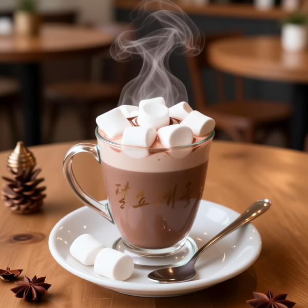 | 프롬프트 | Add Korean text '달콤한 겨울' in elegant calligraphy on the cup |