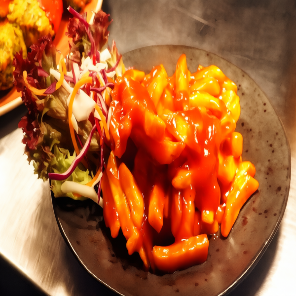떡볶이 사진을 수채화 스타일로 변환해봤습니다. 원본의 생생한 색감이 부드러운 수채화 터치로 바뀌니까 색다른 느낌이네요.