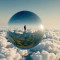 공중에 떠 있는 투명한 유리 구 속의 한 인물. 구는…