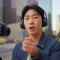 로스앤젤레스(LA)에 있는 한 사람. 헤드폰을 착용하…