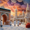 이슬람 카바 신전이 중심에 있으며, 흰 옷을 입은 무슬…
