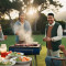 따뜻한 햇살 아래 푸른 잔디밭에서 가족과 친구들이 함께…
