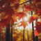 따뜻한 햇살 아래 붉고 노란 단풍잎이 천천히 흩날리는 …