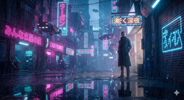 | 프롬프트 | 블레이드 러너에서 영감을 받은 미래적 앨범 아트, 폭우가 쏟아지는 시네마틱 사이버펑크 거리, 핑크와 블루 네온 간판이 빛나고, 젖은 바닥에 반사가 선명하게 비치는 장면, 극도로 디테일한 환경, 8K 초고해상도, 우울하고 쓸쓸한 분위기, 라이언 고슬링을 연상시키는 외형의 복제인간 같은 고독한 남성 인물, 긴 코트를 입고 있음, 부드러운 림 라이트, 짙고 밀도 높은 공기감, 공중을 떠다니는 홀로그램 입자들, 극적인 구도, 거칠고 미래적인 무드, 드럼 앤 베이스 앨범 커버에 완벽한 스타일, 높은 디테일, 포토리얼한 사이버펑크 미학 |